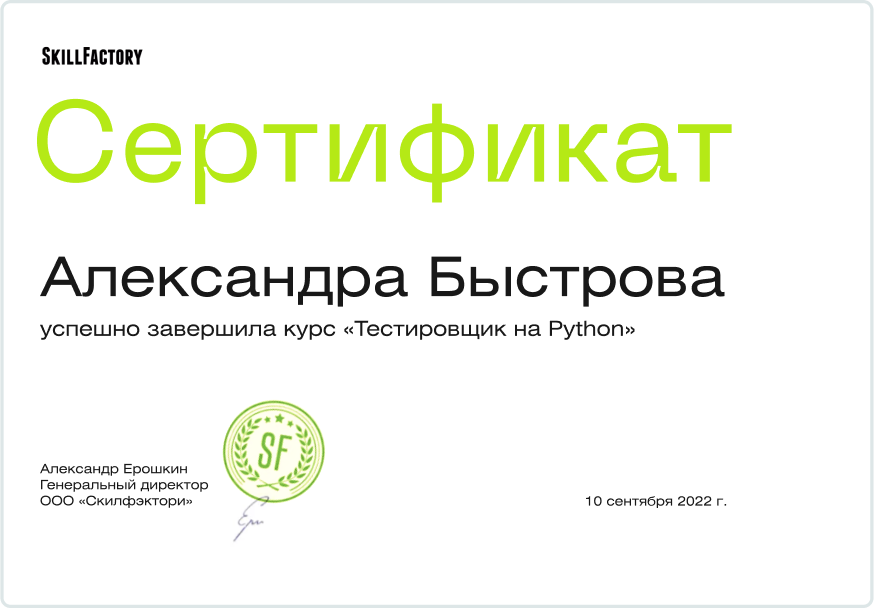 Вы можете получить именной сертификат об успешном окончании курса после прохождения любого из четырех модулей